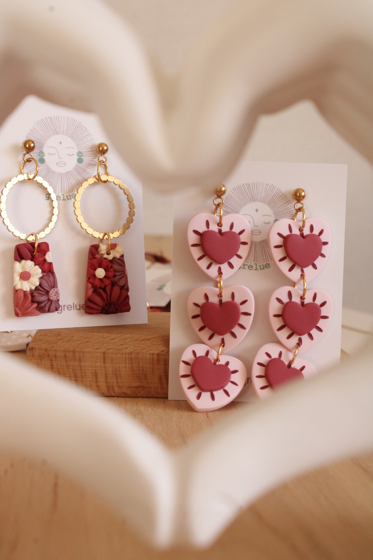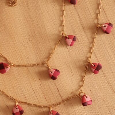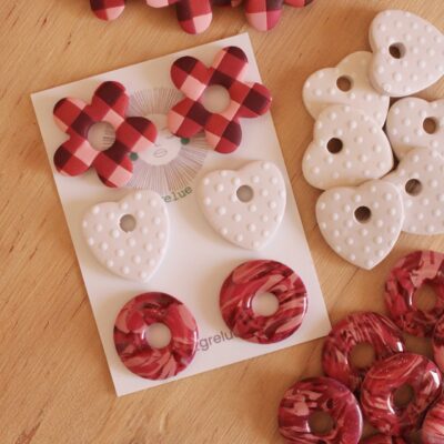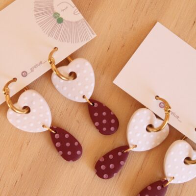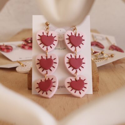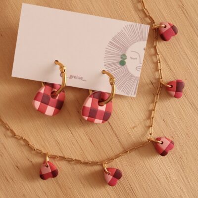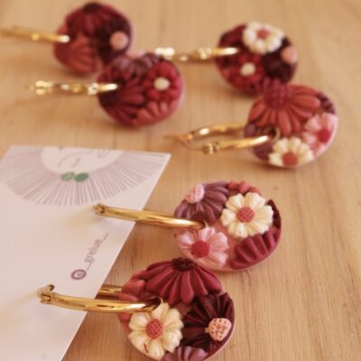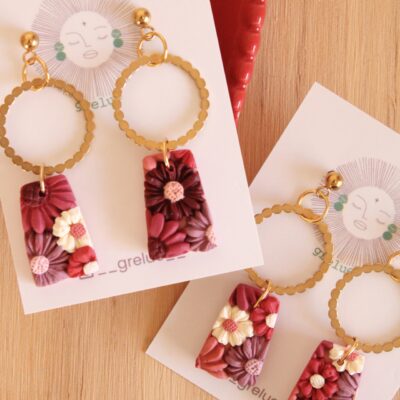 Descubre nuestros útlimos modelos de pendientes hechos a mano con estampados vichy, flores en relieve y detalles en tonos rojizos, rosados y granates, que forman parte de la colección más especial.