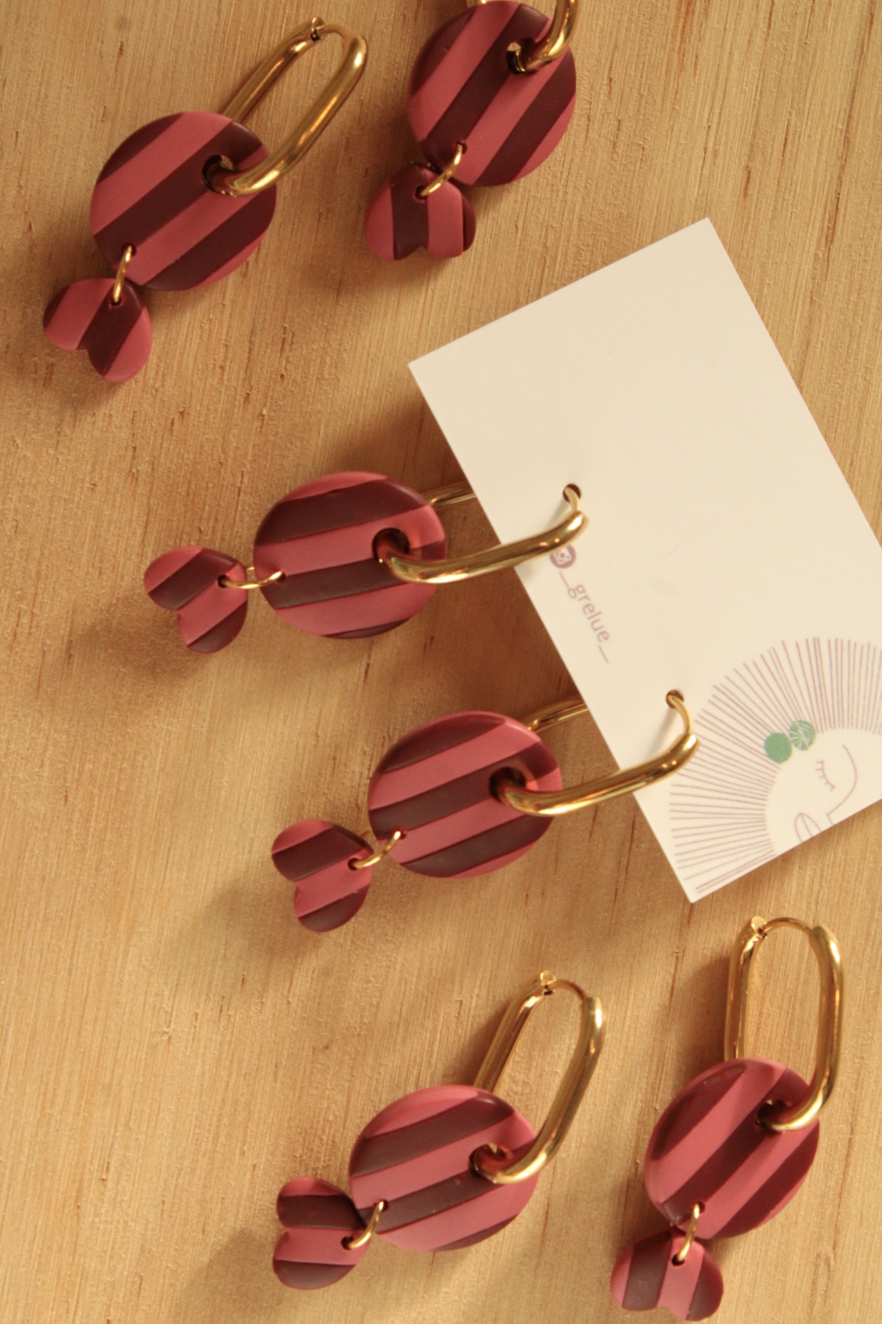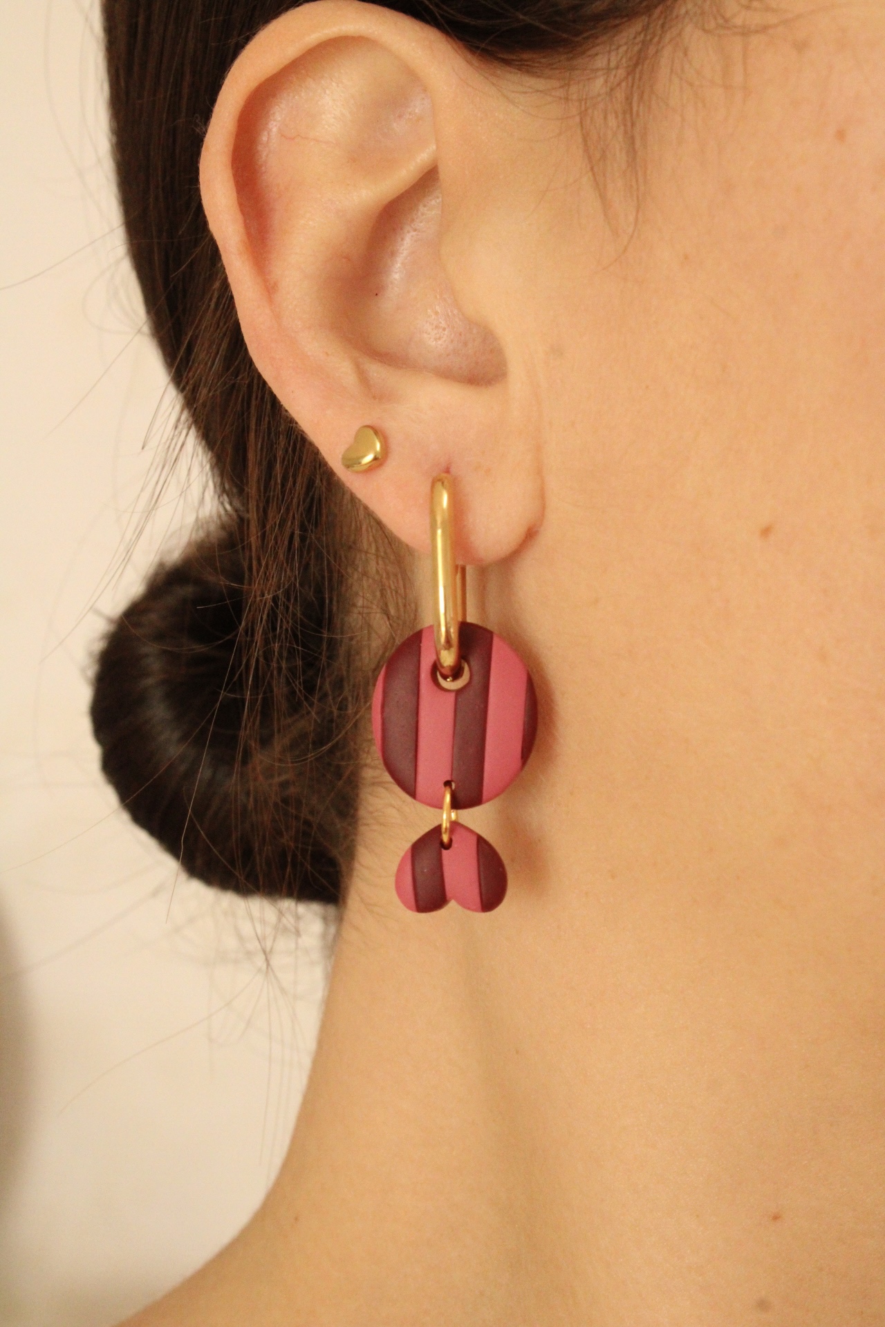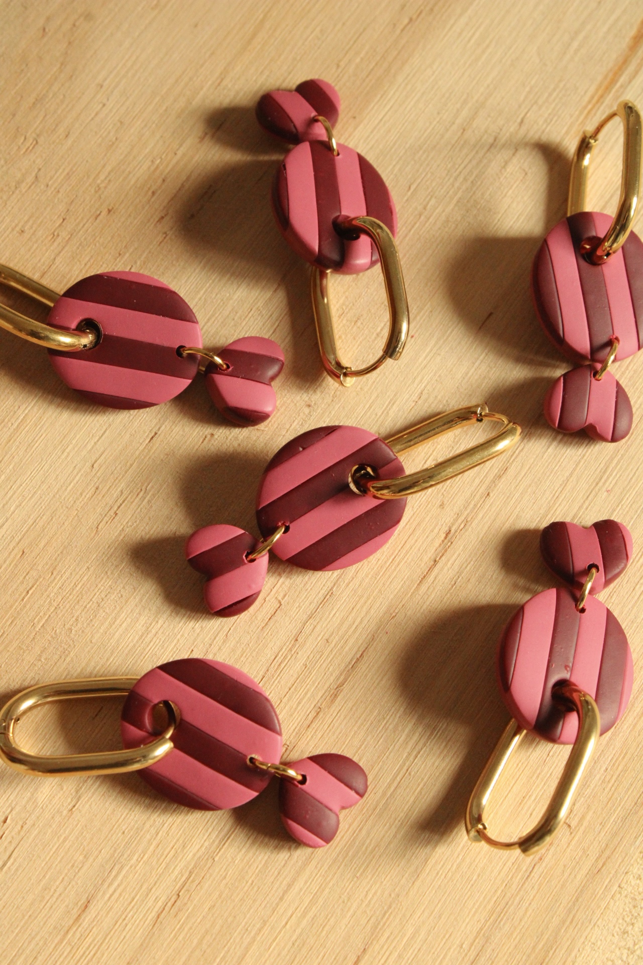 Pendientes de arcilla polimérica hechos a mano con cierres de acero inoxidable.